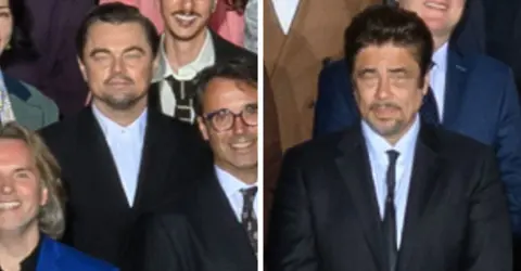 But they’re all somewhat upstaged by the always delightful Guillermo del Toro. The Frankenstein director is one of the only stars pulling a fun pose this year, with his outstretched arms making him the highlight of the front row.