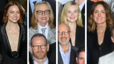 AMPASChalamet isn’t the only recurring A-list face in the class photo – actress Emma Stone (left) is back too, nominated for best actress thanks to her role in the excellent Bugonia.