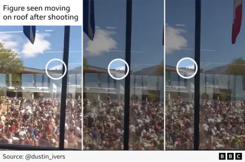 And footage taken from an office behind the gazebo that Kirk was in appears to show someone running across the roof of the Losee Center after the shooting.