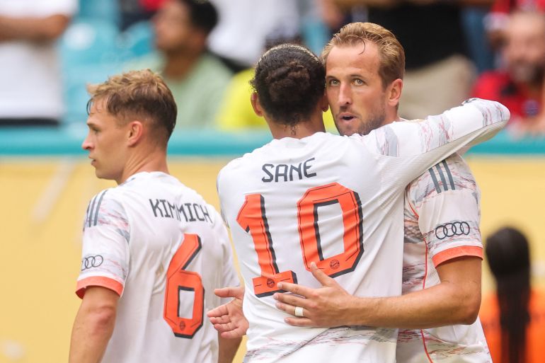 Joshua Kimmich opened the scoring for Bayern in the sixth minute, and the score was doubled four minutes later as Kane bagged his first.
