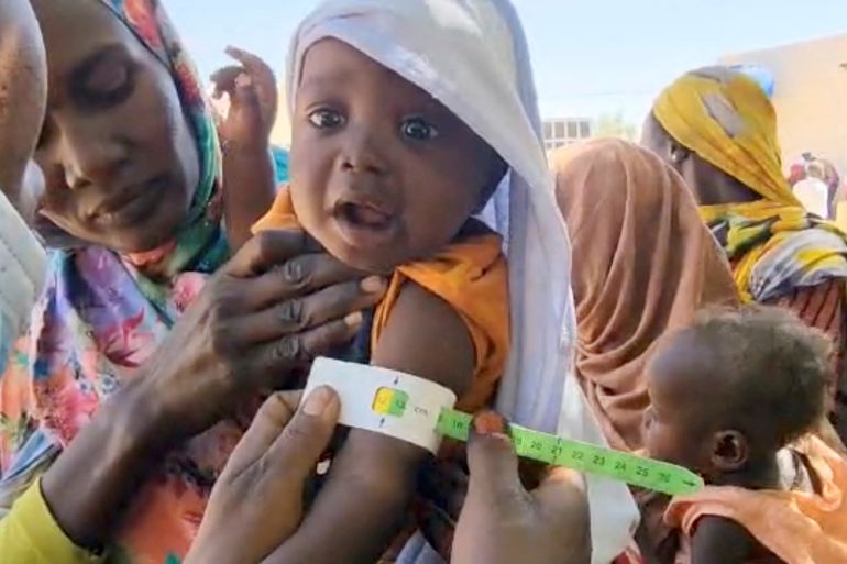 A child gets tested for malnutrition at World Food Programme (WFP) camp in el-Fasher in Darfur, Sudan [Reuters]