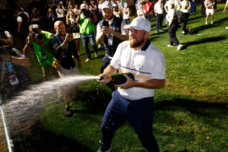 Shortly after, it was Hatton who settled for a par on the closing hole to halve the match and kick off the celebrations. The final match on the schedule was ruled a tie before the day’s matches began, which resulted in a half-point for each team, as Europe’s Viktor Hovland withdrew before the clash with Harris English due to injury.