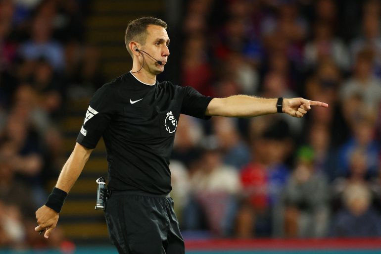 David Coote gives Arsenal a penalty during a Premier League game at Crystal Palace in 2023 [File: Andrew Boyers/Reuters]