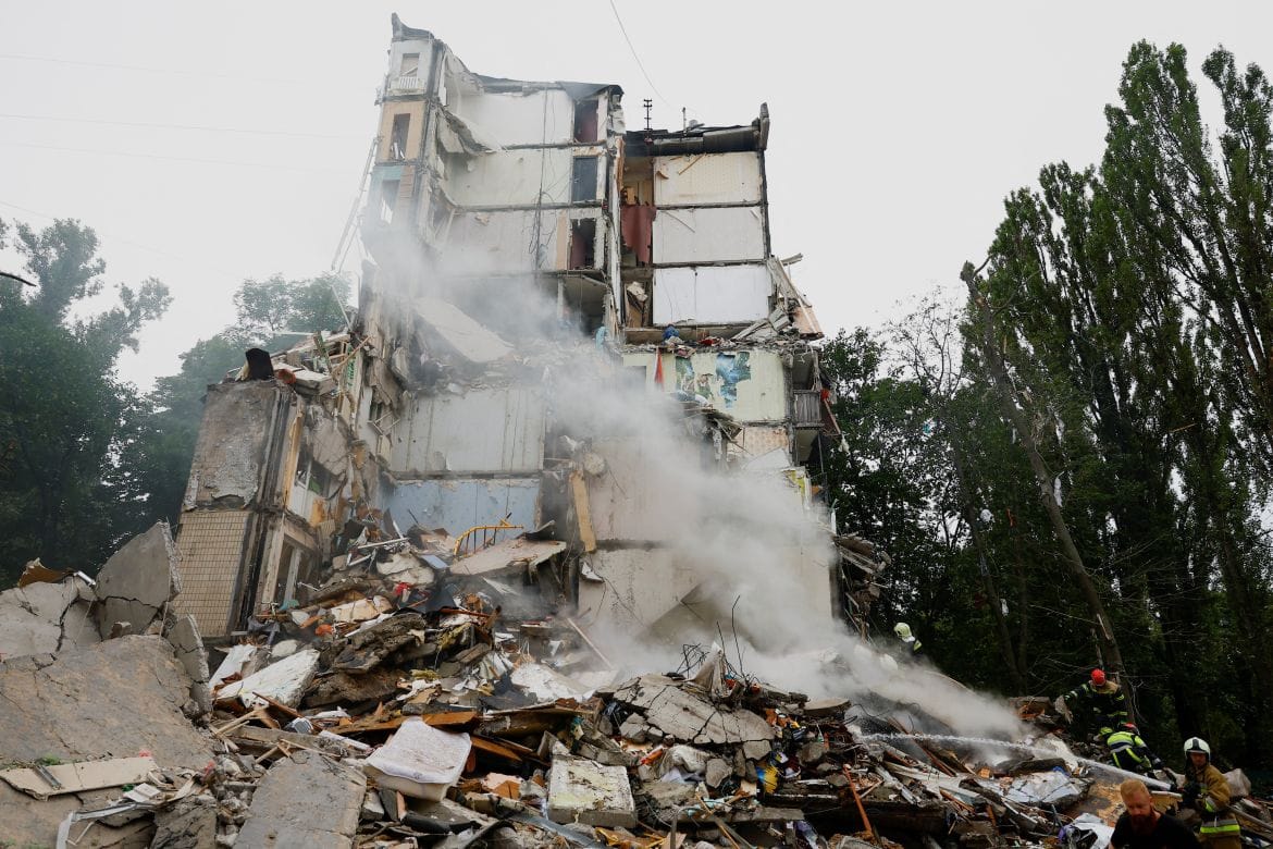 Zelenskyy shared a video of burning ruins, stating that people remained trapped under the rubble of a partially destroyed residential building.