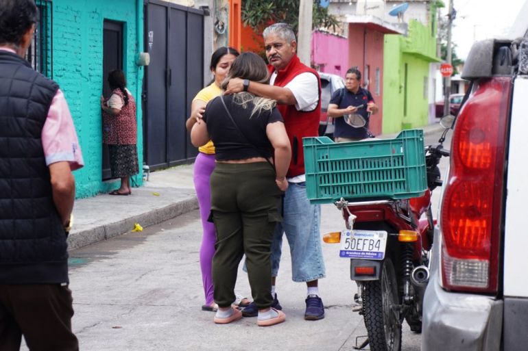 Residents comfort each other after a mass shooting at the Barrio Nuevo neighbourhood in Irapuato, Guanajuato state, Mexico, on June 25, 2025 [Mario Armas/ AFP]