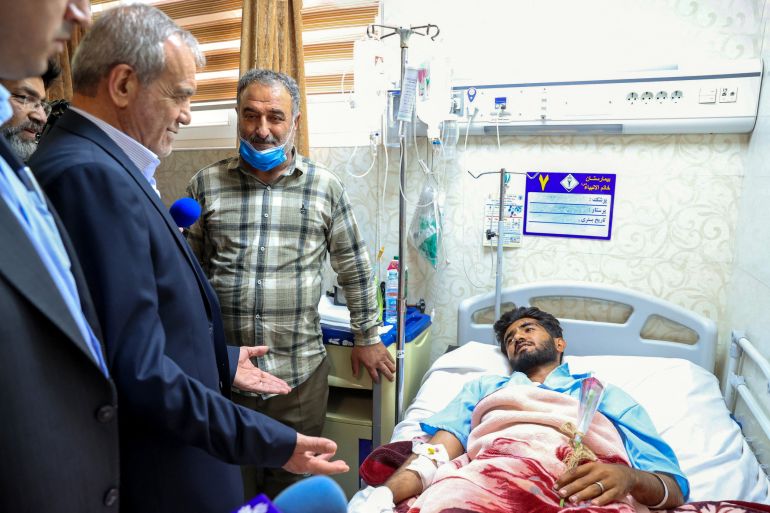 Iran’s President Pezeshkian visits injured, site of deadly port explosion