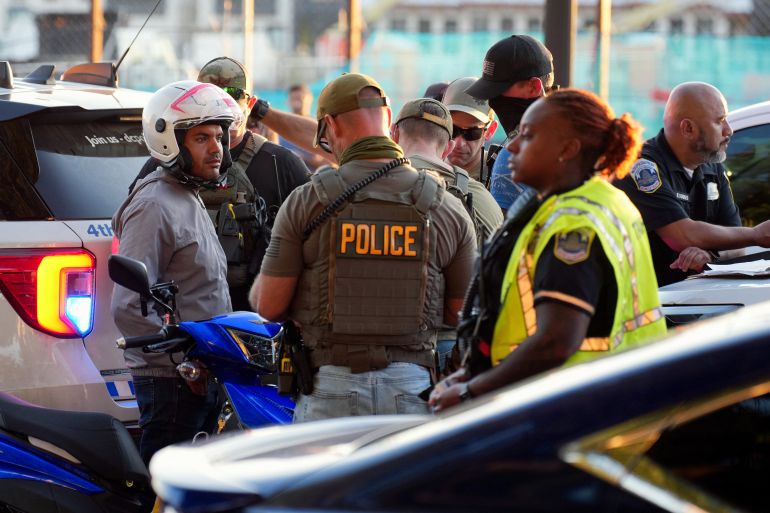 Local police work alongside officers with Homeland Security Investigations, the investigative arm of the US Department of Homeland Security, at a checkpoint in Washington, DC, on August 25, 2025 [Kevin Dietsch/Getty Images via AFP]