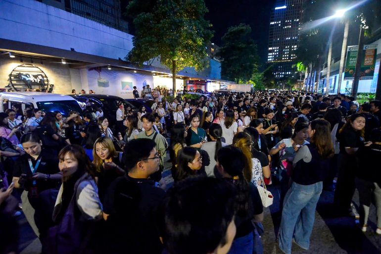 Call centre employees gather outside their office building after earthquake tremors in Cebu in the central Philippines, September 30, 2025 [AFP]