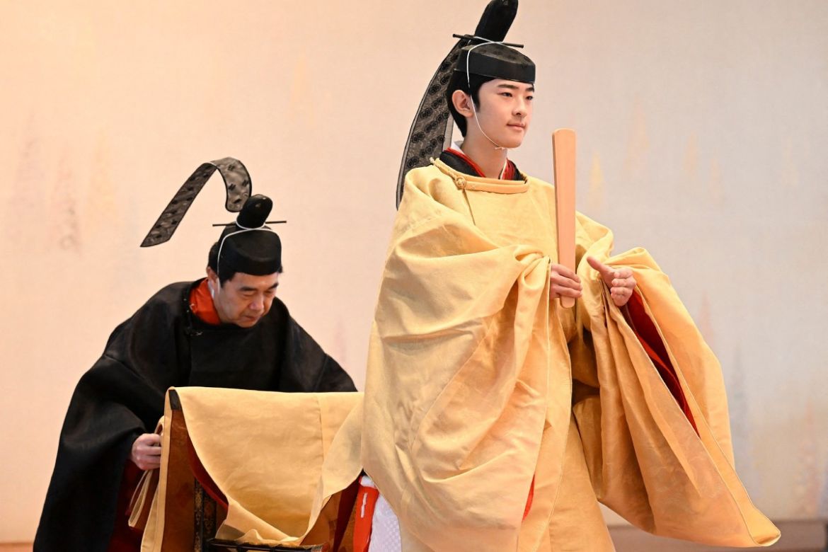The 19-year-old nephew of Emperor Naruhito received a black silk and lacquer crown on Saturday, symbolising his entry into royal adulthood.