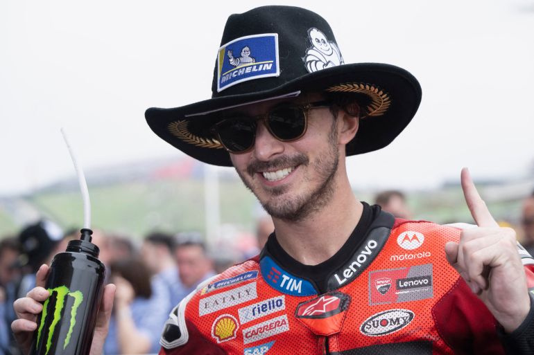 “I’m super happy, I’m already without [my] voice. I screamed out loud,” Bagnaia said after he had a celebratory hot dog in the paddock.