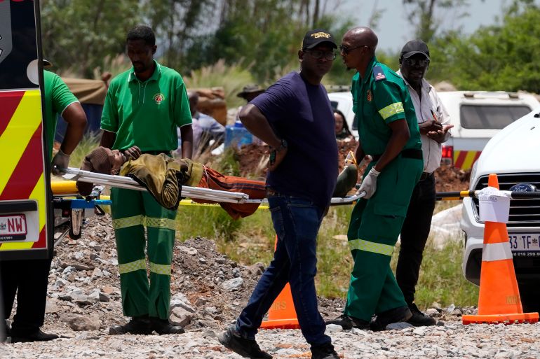 A group of 14 miners, including a teenager, escaped from an unsealed shaft in the Stilfontein mine in November. The men said they trekked for hours to get there. One man told Al Jazeera at the time that people he left behind were dying, and that “some are already dead”. Another added that “a boss” in the shaft had tried to prevent them from leaving with a gun.