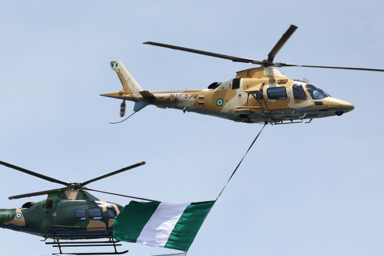 Nigerian Air Force helicopters in Lagos, Nigeria, in May 2025 [File: Sodiq Adelakun/ Reuters]