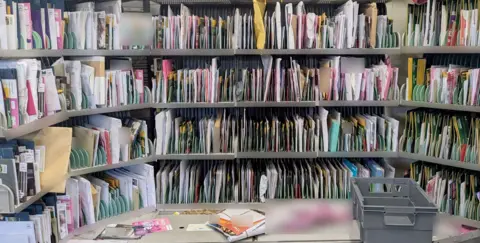 Postal workers told the BBC some letters sit in postal depots for weeks, while the union representing them describes Royal Mail as “a company in crisis”.