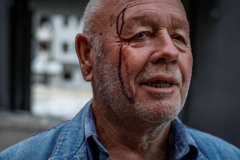Volodymyr, 76, was among the dozens of people wounded in Russian missile and drone attacks in Kyiv, overnight on August 28, that killed 14 people [Alina Smutko/Reuters]