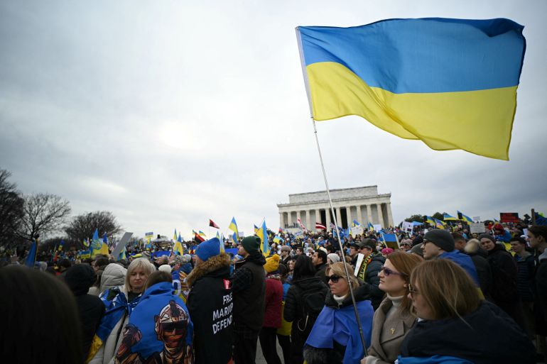 Demonstrators gather in front of the Lincoln Memorial in Washington, DC in support of Ukraine before the third anniversary of the Russian invasion, February 22, 2025 [Mandel Ngan/AFP]