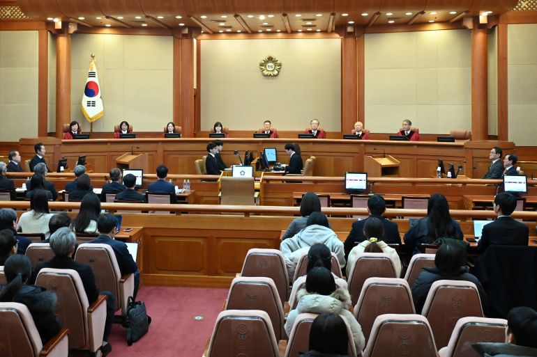 The trial, which began on Tuesday in the capital, Seoul, will determine whether to strip Yoon of his presidential duties over a failed power grab in December. The hearing was adjourned minutes after it started in the country’s Constitutional Court due to Yoon’s absence.