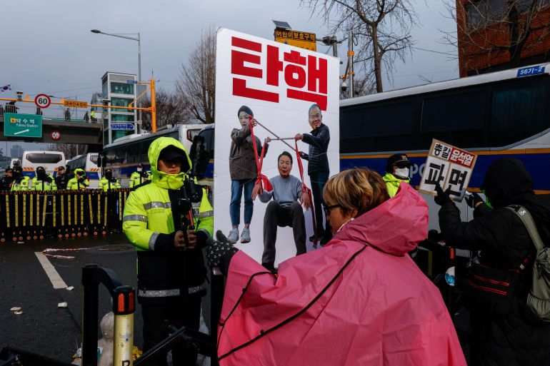 Early on Monday dozens of Yoon’s legislators from the People Power Party turned up in front of his presidential residence, and police blocked roads.