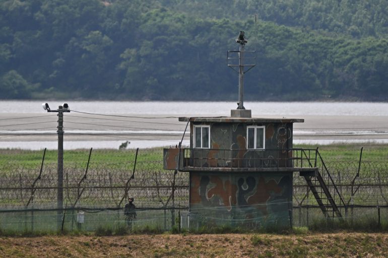 A South Korean soldier patrols the border with North Korea on June 5, 2025 [Pedro Pardo/AFP]