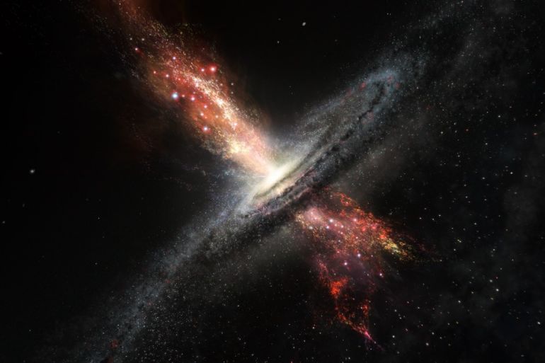 He added that instead of spinning rapidly as expected, the black hole was “belching up” gas, driven outwards by the blinding intensity of light.