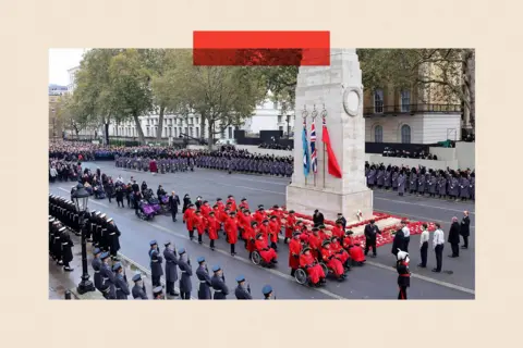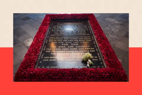 A wooden cenotaph, initially intended to be temporary, was erected in Whitehall. The remains of an unidentified soldier were buried at Westminster Abbey on Armistice Day 1920.
