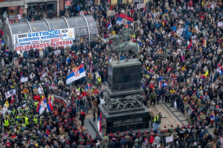 Demonstrations have gathered momentum in Serbia since 15 people were killed in a railway station accident in November.