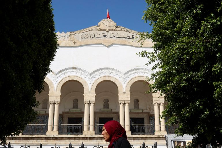 A woman walks past the Palace of Justice in Tunis, Tunisia [File: Jihed Abidellaoui/Reuters]