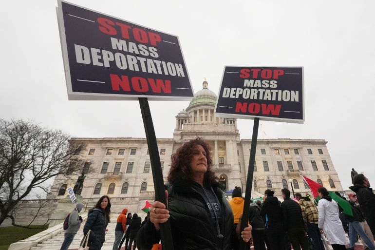 Protesters rally against mass deportation outside the Rhode Island State House on March 17 [Charles Krupa/AP Photo]