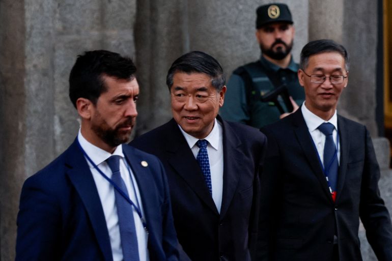 Chinese Vice Premier He Lifeng leaves Santa Cruz Palace following a meeting with US Treasury Secretary Scott Bessent in Madrid, Spain, on September 14, 2025 [Louiza Vradi/Reuters]