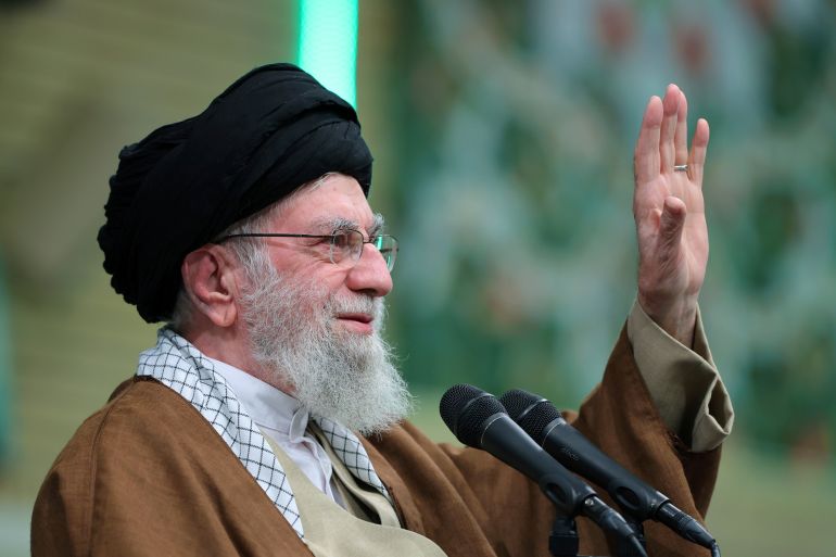 In a photo released by the office of the Iranian supreme leader, Supreme Leader Ayatollah Ali Khamenei waves to the crowd during a meeting in Tehran, Iran, Sunday, December 22, 2024 [Office of the Iranian Supreme Leader via AP]