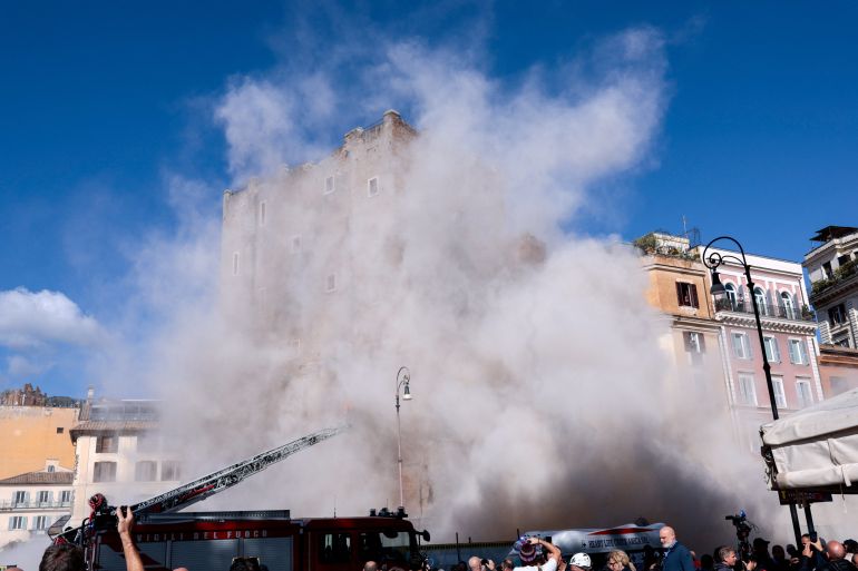 Stroici had been helping to renovate the 29-metre (95-foot) Torre dei Conti, which partially collapsed shortly before midday on Monday, sending rubble into the street and a thick white cloud of dust into the air.
